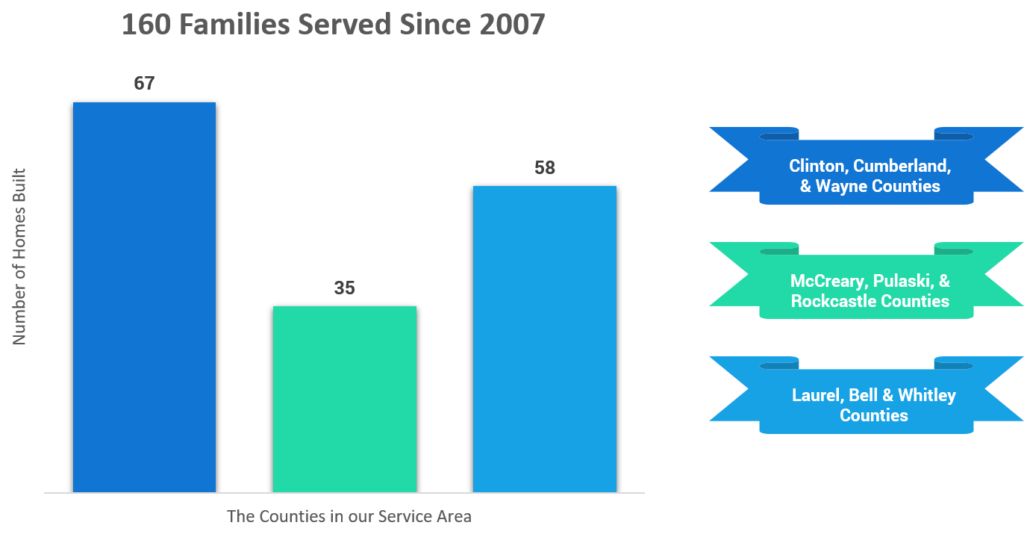 In the years since, Highlands Housing has assisted 250 families achieve the dream of homeownership, increasing annual housing production over ten-fold while developing the staff expertise and that of area contractors. Historically serving six of Kentucky’s poorest counties with limited affordable housing development activity, Highlands Housing has expanded its geography to nine counties and offers a wide array of services.